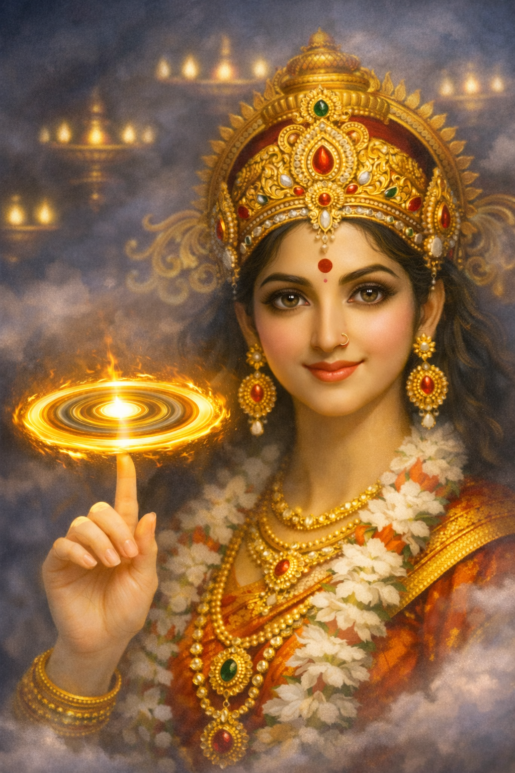 A vision of Devi holding the sustaining discus.